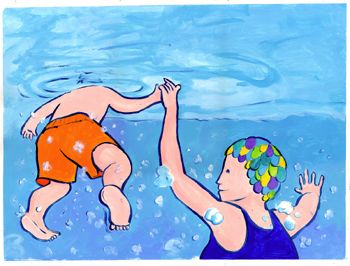 Joshua and his grandmother spend a day experiencing H2O in its many forms. The delighted boy feeds ducks on the river, runs through puddles, plays at a drinking fountain, swims in a pool, and snuggles up for a rainy “cosy, dozy” bus ride home. The child speaks only three words but his favorite is “splash,” which appears hand-lettered in block form. The lines of type are set at slight angles to one another to mimic flowing water. Though not a rhyming story, the words flow with easy-on-the-tongue phrases such as “Deep down, under the water,/under the water, deep down./Into the froth and the foam,/and the bubbles,/splashing and crashing,/fizzing and sparkling.” The bright, saturated illustrations are eye-catching in their colorful simplicity. One slight discrepancy: Joshua appears to change sizes, sometimes only coming up to Granny’s waist while at other times almost to her shoulders. Very young children who are fascinated with water will enjoy hearing about Joshua’s day.
