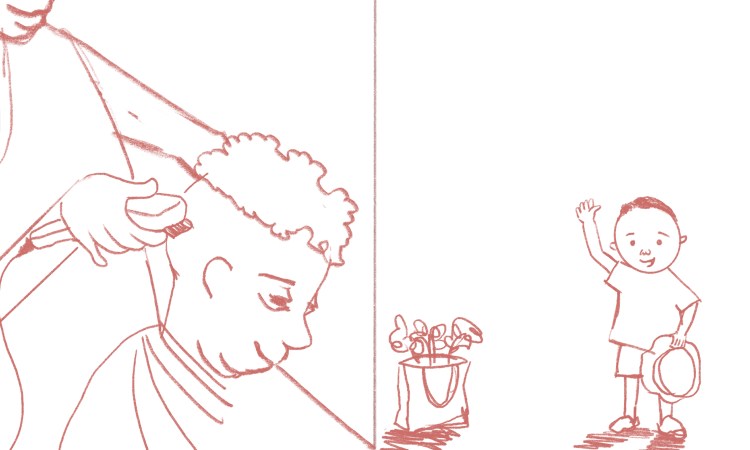 Thousands of languages and stories exist between my home in Zimbabwe in the south and Mali in the west of Africa. It was exciting to find commonalities between Africans and use them in the storytelling. I told the publisher that this should be a story about people, not a project, no matter how ambitious, and started drawing scenes of everyday life in a dusty town, including a hairdresser, barbershop, fabric shop, people on bicycles, and dusty roads.